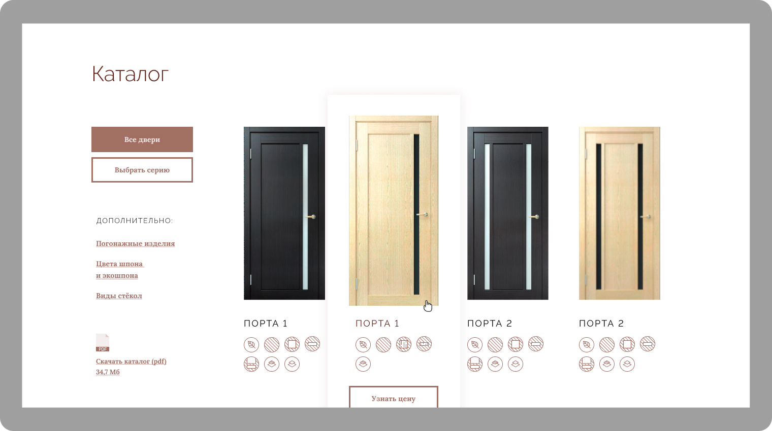 У каждой двери есть набор иконок со свойствами, которые дают понять вариативность модели